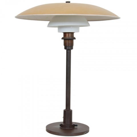 Poul Henningsen 4½-3½ bordlampe med krom stel og hvide opalglas skærme. Lampen er fra omkring 2010 og fremstår i flot stand med alle skærme intakte og med et par små ridser på foden. •Designer: Poul Henningsen •Producent: Louis Poulsen •Produktions år: Omkring 2010 •Model: 4½-3½ bordlampe •Mål: Højde: 55 / Diameter: 45 Cm •Materialer: Krom stel og opalglas skærme •Stand: Brugt Poul Henningsen 4½-3½ bordlampe