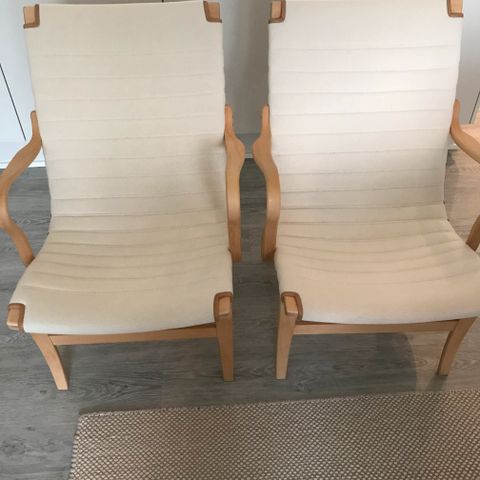 Bruno Mathsson Eva stol med stel af lakeret bøg og sort stofbetræk. Stolen er fra starten af 2000'erne og fremstår i god stand, med enkelte mærker i stoffet, og med enkelte mærker og ridser i stellet. •Designer: Bruno Mathsson •Producent: Dux •Produktions år: Starten af 2000'erne •Model: Eva •Mål: Højde 82 / Bredde 60 / Dybde 71 / Sædehøjde 34 Cm •Materialer: Stel af lakeret bøg og betræk af sort stof •Stand: Brugt Bruno Mathsson Eva stol af bøg og sort stof.