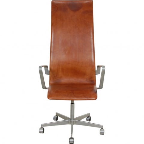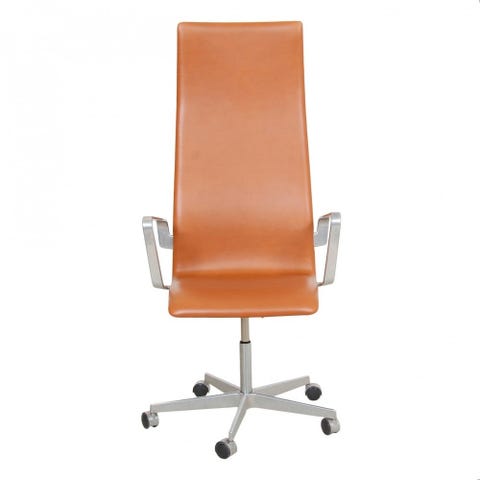 Arne Jacobsen Oxford mellemhøj kontorstol nybetrukket med Whisky classic læder