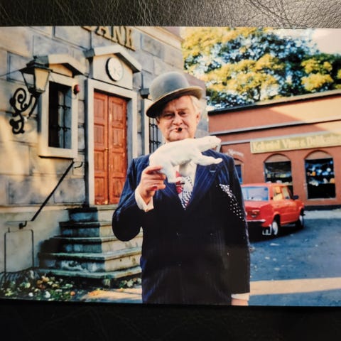 Flot og stort billede af skuespilleren Ove Sprogøe. Stammer fra hans fødselsdag, som blev afholdt på Nordisk film for mange år siden. Professionelt indrammet hos glarmester.