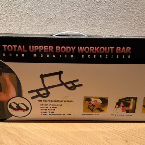 Denne workout bar sættes hurtigt op i døren, og man slipper for at skrue/bore den fast, da den bruger dørkarmen som "fæstningspunkt"
