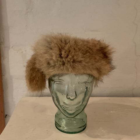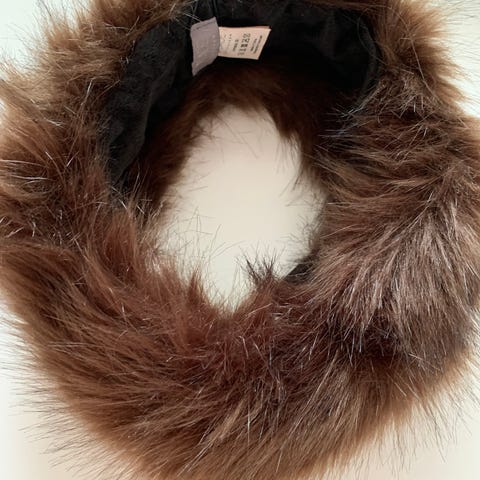 Pandebånd i ægte pels. Den passer mig og jeg bruger hattestørrelse 56, men tænker at den godt kan bruges af en med et lidt større/mindre hoved.