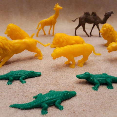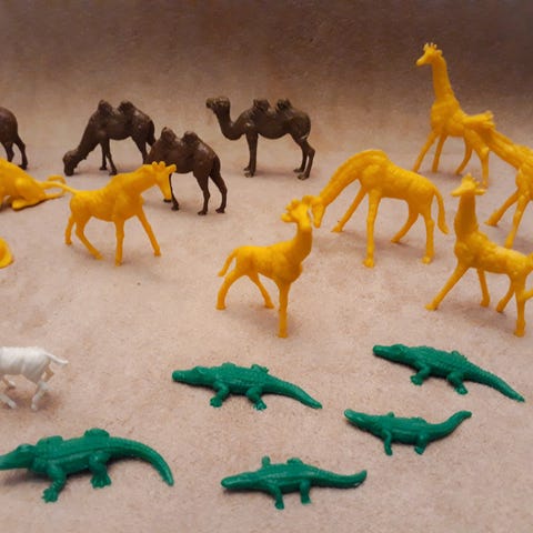 Legetøj, 4 ubrugte vintage zoo dyr, bestående af en pelssæl, en hvalros, en blåhval og en kaskelothval. Fremstillet i Kina af AAA i 1988-89. Der har ikke været leget med dyrene, så de er som nye og i perfekt stand, da de har været pakket væk i 30år. Måler ca 9 cm i længden og 5 cm i højden. Sælges kun samlet. Se også mine annoncer med Funrise bondegårdsdyr og heste fra samme periode.