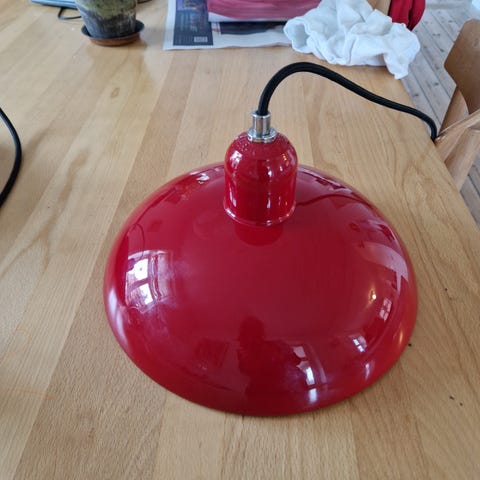 Fritz Hansen Kaiser Idell 6631-P loftslampe. Venetian Red (rød). Sort stofledning. Ca. 8 år gammel. Ingen synlige brugsspor.