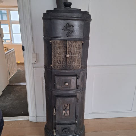 Flot gammel antik kakkelovn fra år ca 1900, er stadig fuld funktional.