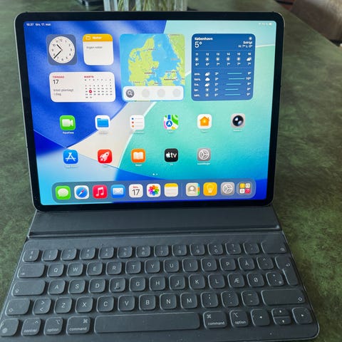 Apple iPad Pro 256 GB tablet med indbygget hukommelse på 256 GB. Enheden har en skærm med høj opløsning og leveres med et tastaturcover, som også fungerer som beskyttelse. Velegnet til både arbejde og underholdning.