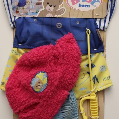 Baby Born Dukketøj sæt med forskellige farver og materialer til børn. Sættet indeholder flere beklædningsdele, der passer til dukker. Materialerne og størrelserne varierer for at give forskellige påklædningsmuligheder.