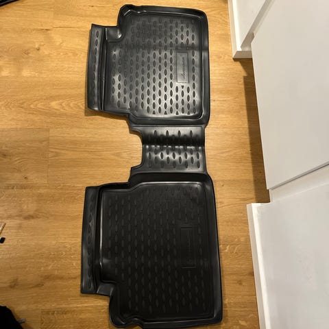 Floorline Deluxe Bundmåtter sæt i sort farve. Sættet består af måtter til bilens gulv med perfekt pasform og skridsikker bagside. Materialet er kraftigt og hjælper til at beskytte gulvet mod slid. Måtterne er designet til at være både elegante og skånsomme mod bilens indre.