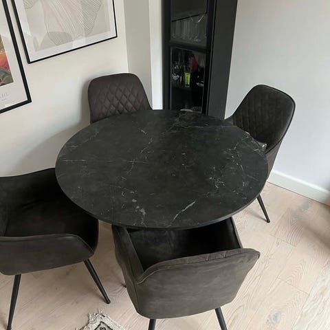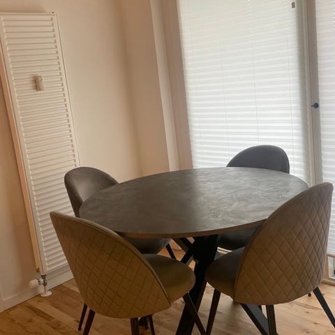 Spisebordsæt sælges da jeg skal flytte. Har haft det i 1,5 år. 4 stole følger med og hele sættet sælges for 2000kr
