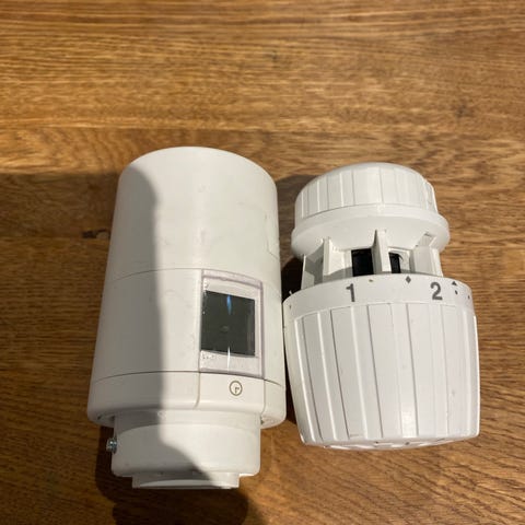 Danfoss termostatventil i hvid farve. Denne ventil anvendes til regulering af varme i radiatorer og sikrer temperaturstyring i rum. Ventilen har en drejeknap med nummereret skala for præcis indstilling. Da jeg har skifte til nogen andre modeller den virker fint fejler ikke noget.