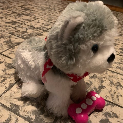 Bamse Bamse hund med tilhørende fjernbetjening. Legetøjet forestiller en hund og er udstyret med elektroniske funktioner, der styres via fjernbetjeningen. Materiale og størrelse er ikke specificeret.