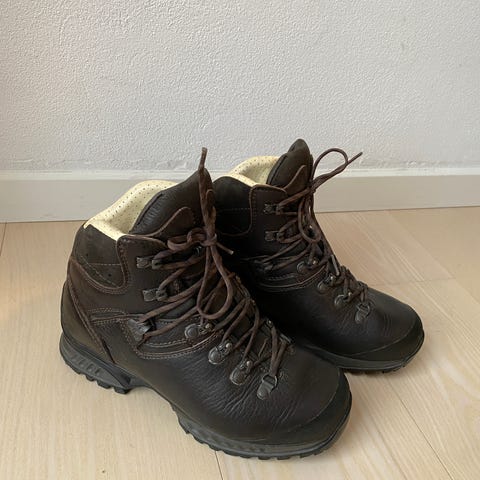 Hanwag model Lhasa II, dame vandrestøvle i størrelse 39,5. Støvlerne er brune og lavet af slidstærkt YAK læder, velegnet til udendørs brug.