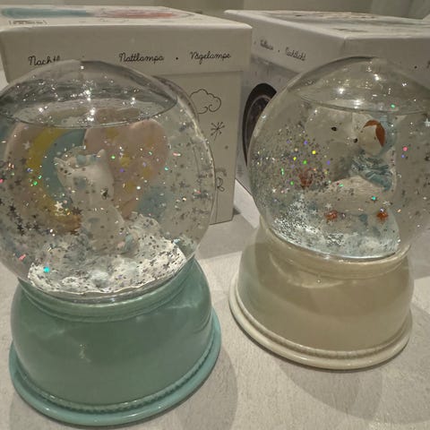 Djeco legetøj sneglobe med turkis base og glaskuppel indeholdende små dekorative elementer. Egnet til børn som dekorativt og underholdende legetøj.Sender gerne dog ikke som Fiks og færdig