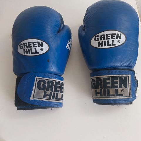 Green Hill boksehandsker til kampsport, unisex størrelse. Handskerne er designet til at give beskyttelse og komfort under træning og kampe. De har en robust konstruktion med polstring for at beskytte hænderne og minimere skader. Farvesammensætningen inkluderer hvid, rød og sort med Green Hill logo.