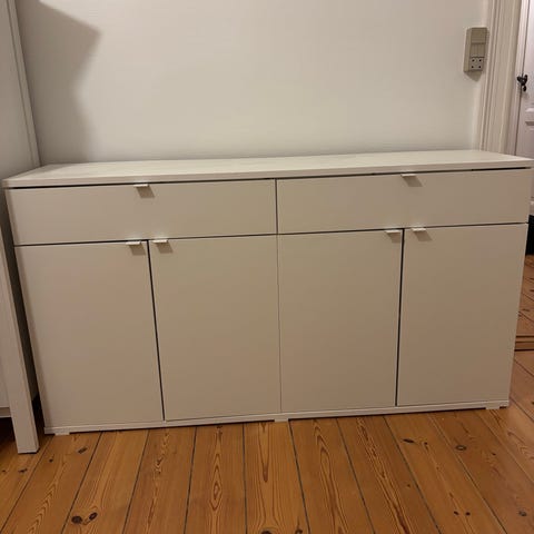 Praktisk skænk fra Vida XL. 50 cm dyb, så den kan bruges både som bænk i entréen eller tvmøbel i stuen. Der er to skabslåger.