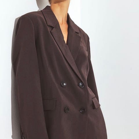 Denne blazer er oversized og har et for og en klassisk krave. Den har forede skuldre, knaplukninger med en forside og knapmanchetter. Blazeren har en falsk brystlomme og falske forlommer med flap.