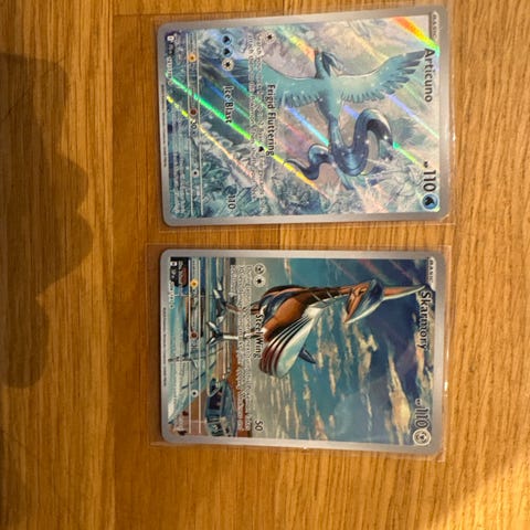 Pokémon Skarmory samlekort med holografisk effekt og 110 HP. Kortet viser Skarmory-figuren med angreb på 50 skade.
