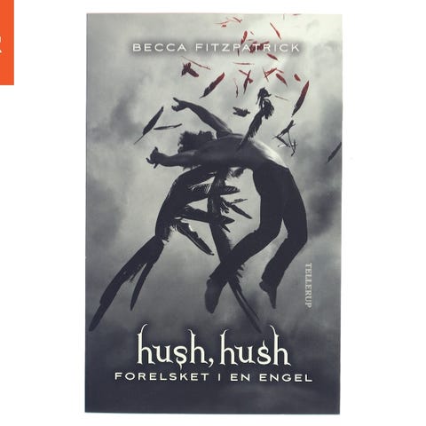 Hush, Hush: Forelsket i en engel af Becca Fitzpatrick. Nora på 16 år får en dag en ny biologimakker. Ganske uforklarligt er der noget ved hans arrogante væsen og mørke sind hun føler sig draget af. Men det er langt fra ufarligt at falde for en falden engel ...