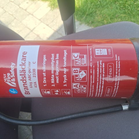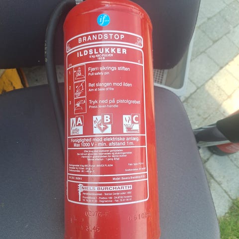 Pulverslukker. Er produceret i 2014, men er opbevaret i en tæt kælder og alt er ellers ok.