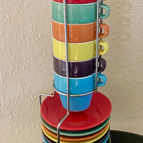 &Tradition Rød Mønstret Porcelæn Kaffekopper med Underkopper og Tallerkener