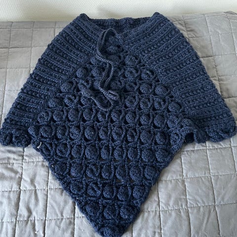 Poncho, Italiensk 'Ciao Milano', str. M/L, Helt ny og ubrugt, flot strikket poncho med 'ærmer'. Nypris 499 kr. Super til efteråret/vinteren med noget vindtæt under.