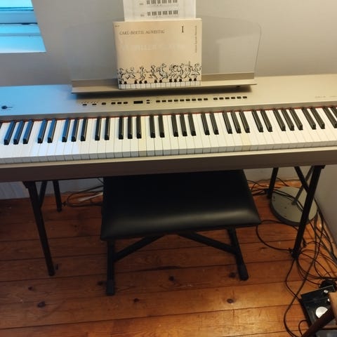 Samme ikoniske elektriske klaver som 200A-modellen, men i den robuste skole-/studieversion. Klaveret leverer den velkendte varme, let gritty Wurlitzer-tone, perfekt til alt fra soul og jazz til moderne produktioner. Tangenterne spiller jævnt, og forstærkerdelen fungerer som den skal. Kabinettet står pænt for alderen med normale brugsspor. Et par løse knapper, men ellers er alt der. Kan opleve på Nørrebro efter aftale