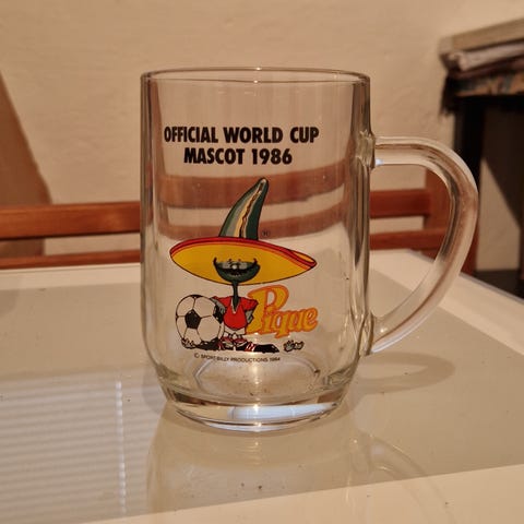 2 malede klare flasker formet og malet som landsholdsspillere / fodboldspiller. De er nok fra dansk fodbolds storhedstid i 1980’erne. Den ene flaske har en label fra Hr. G. Nielsen Jomfru Ane Gade