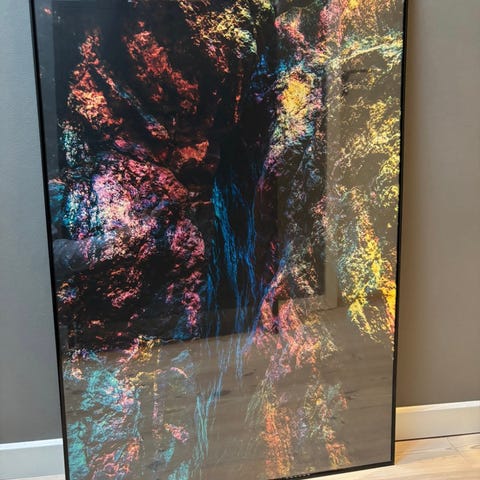 Abstrakt og farverig plakat i sort aluramme