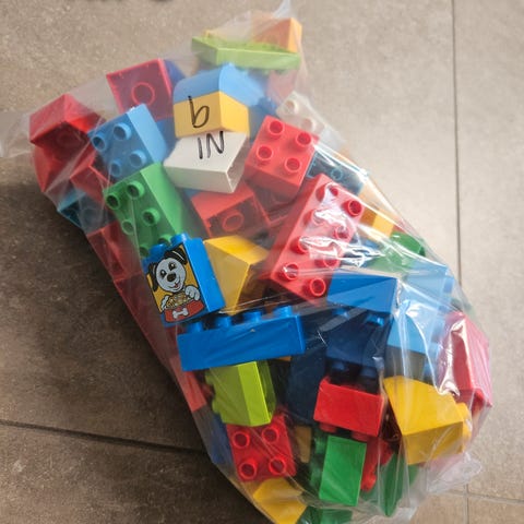 LEGO DUPLO sæt med forskellige klodser i rosa, beige og grønne farver. Indeholder buede og rektangulære klodser samt blomster- og dyrefigurer. Passer til børn og til leg med kreative konstruktioner.