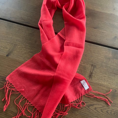 Nyt flot Pashmina tørklæde i lys, brun og bordeaux farver, med frynser.