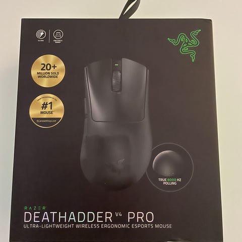 Så god som ny Razer DeathAdder V3 Pro i hvid med Superglide Glass Skates for ultra lav friktion.