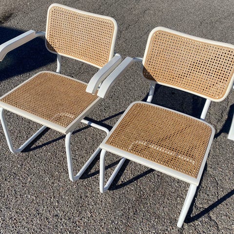 Jeg sælger disse fire super fede frisvinger stole med sortmalet stel. De er i flot stand både stel og flet (helt intakt bortset fra et lille spot på en af stolene, se billeder). 😊