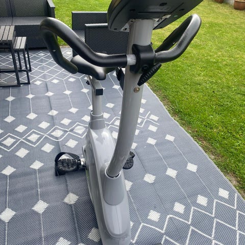 Har komfortabelt sæde og håndtag med indbyggede pulsmålere.