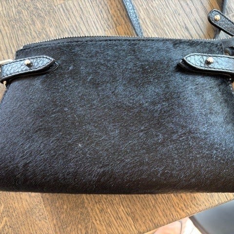 Decadent bæltetaske i sort læder og kanvas-stof. Lynlålomme bagpå. Ellers et stort lynlåsrum med en lille lomme. Justerbar stofrem. Tasken er ca. 32 cm på det bredeste punkt og 17 cm høj. Brugt få gange, som ny. Nypris: omkring 2500kr Pris: 1000k