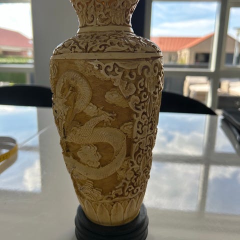 På Vasen ser man: landskabsmotiv med blomster, træer og vandfald.