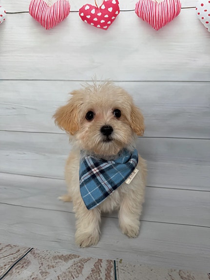 Smuk Maltipoo-hvalp (han) – ægte lille bamse i karamelfarve
