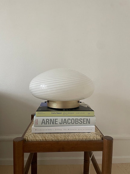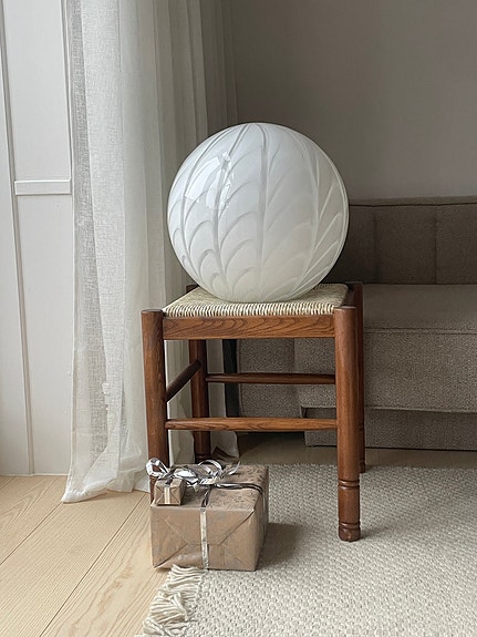 Elegant, hvid vintage Murano pendel med et super flot udtryk og lys. Vi er ihvertfald selv meget begejstrede for denne type 6-swirl. Bemærk de helt små luftbobler i glasset på sidste billede. Prisen er sat derefter.