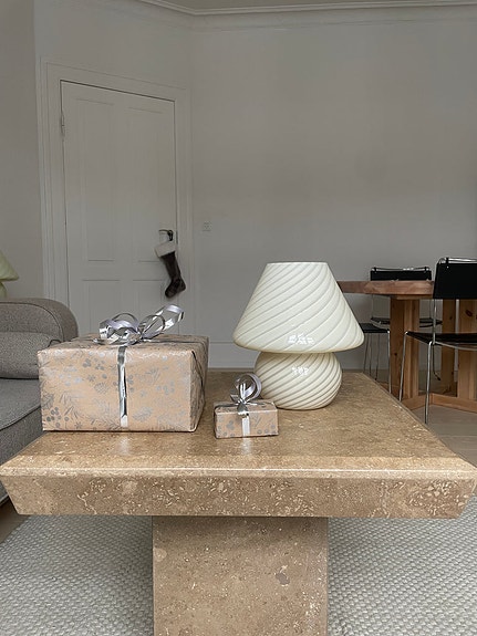 Murano pendel oval og i klassisk hvid 6-swirl, 40 cm