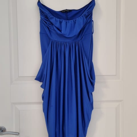 Dorothy Perkins, str. S, Blå, sort, hvid, Polyester, Næsten som ny, Fin kropsnær kjole i elastisk kvalitet. Går til lige over knæet. Fin både som festkjole og sommerkjole. Kun brugt få gange. Str. 34.