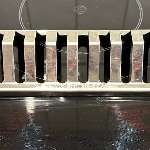 Andet, Stegholder stål, Egnet til kylling i ovn eller grill i rustfri stål, eller til at sætte bagekartofler på metallets varmeledende egenskaber hjælper med til at varme kartoflerne op indefra også, så det går hurtigere at bage dem..... den kan også fint bruges til eks. kyllingebryster, evt. viklet ind i bacon, bagte løg eller alt muligt andet... . let at rense. 35x17x10 cm. Formentlig slut 60'erne til slut 70'erne