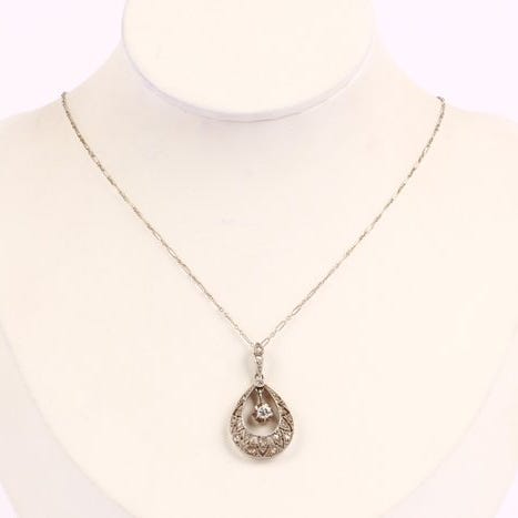 Halskæde med vedhæng/broche fra Art decó-perioden 1930-1940 i hvidguld 18 kt.