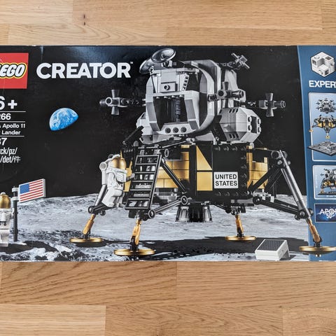 LEGO Creator Lunar Lander bygge sæt med detaljeret model af en månelander, inklusiv astronautfigurer og flag. Sættet er designet til at give en realistisk gengivelse af rumfartøjet og dets funktioner.