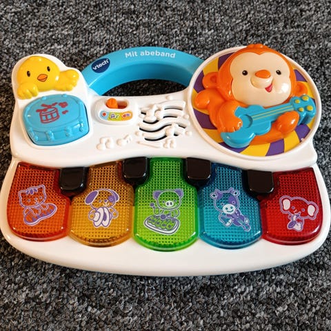 Vtech Abeband legetøj til babyer. Indeholder et klaver med dyremotiver, blinkende lys og legesyg musik. Designet til at tiltrække babys opmærksomhed og opfordre til interaktion. Velegnet til børn i alderen 6-36 måneder. Fremmer opdagelse, udforskning og udvikling af sanserne.