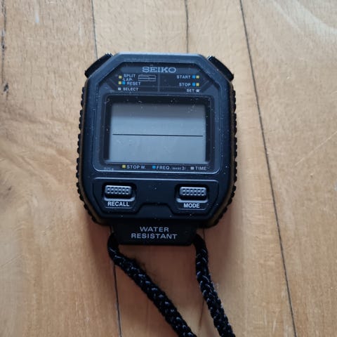 Volkswagen FS21 digital ur med sort display og hvid Volkswagen-logo. Urskiven viser tid i digitalt format.