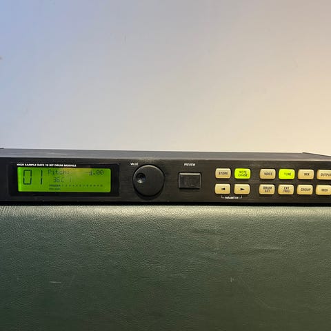 Man kan tjekke det på youtube.. der er stadig beskyttelses plast på. Strømforsyning og det vigtigste lednings sættet til trommerne....bud modtages