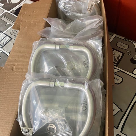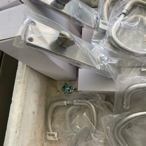 To af håndtagene har desværre fået små slag og derfor ikke længere intakt