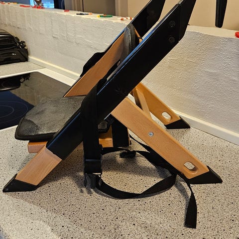 Den passer på de fleste stole, da den han indstilles i højden.