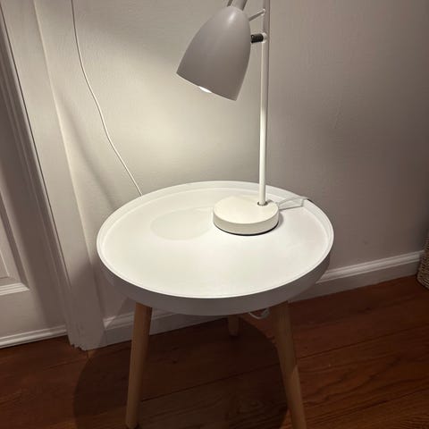 Har den her lille lampe til bord eller gulvet.
