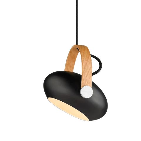 To stk. Halo Design D.C pendler Ø26 og Ø40. Sort aluminium med olieret egetræ, dansk design af Michael Waltersdorff.