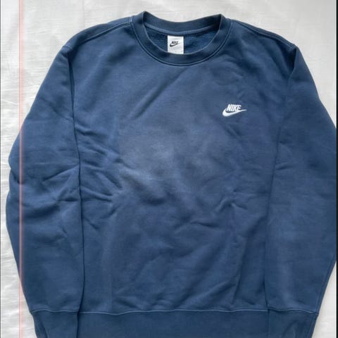 Nike Air sweatshirt i blå farve, størrelse L til herre. Fremstillet i bomuldsmateriale. Har lange ærmer og rund halsudskæring.